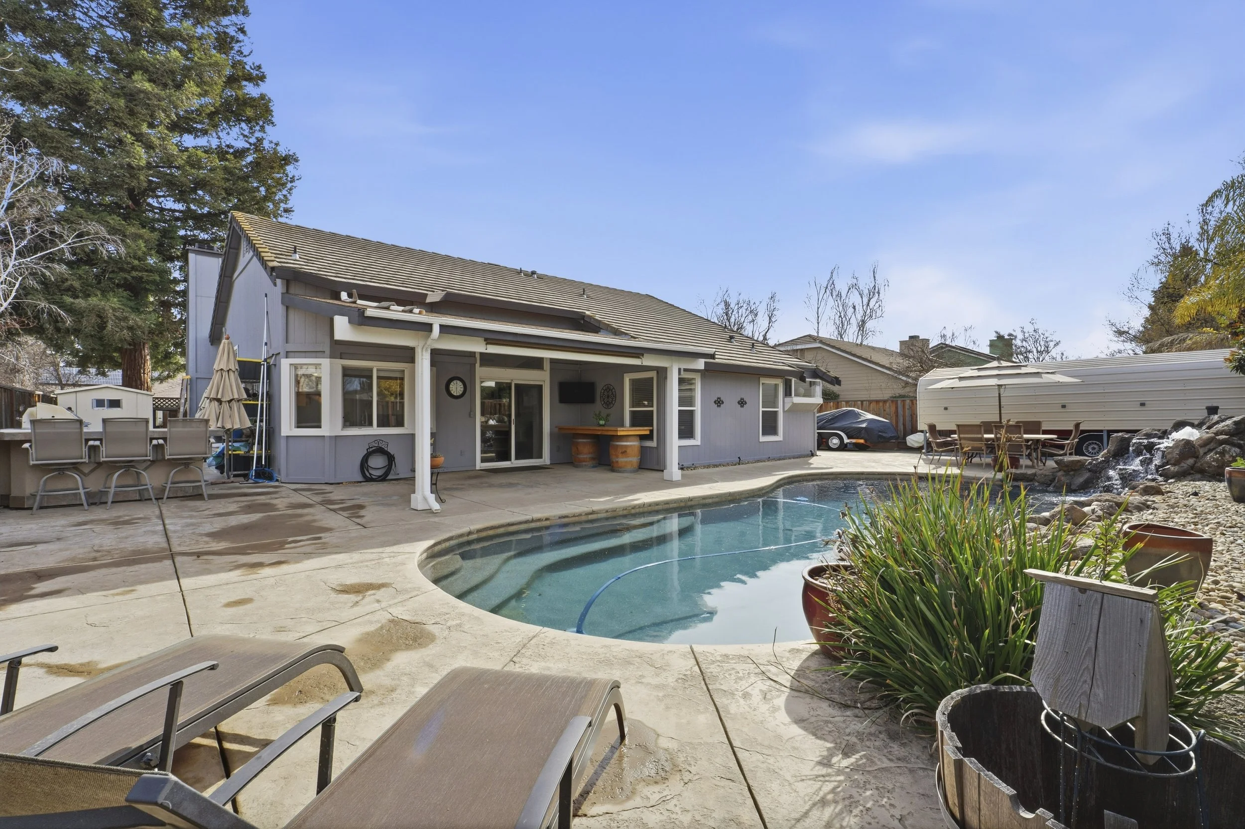 Lovely spacious single story home features 4 bedrooms on a large lot with a gorgeous swimming pool, a 3 car garage and side yard access. Located in sought after Coventry neighborhood, just steps to park. Bright open floor plan with lots of natural light, feels larger than its square footage. Beautifully updated kitchen features stainless steel appliances, granite slab counters, bar seating and a cozy breakfast nook. Spacious primary suite. Backyard oasis features a custom pebble sheen swimming pool with waterfall, a large covered patio, BBQ island, and plenty of room for storage. Massive side yard with room to park your RV, boat and all of your toys. Newer fences. Custom touches throughout include crown molding and much more. Freshly painted interior. Perfect for indoor/outdoor living and entertaining. Conveniently located near top rated Livermore schools, parks, shopping, restaurants, downtown Livermore, world class wineries and Livermore Lab. Easy access to I-580 and 84, BART and ACE Train. This is a home you don’t want to miss!